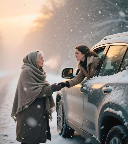 На обочине, засыпанная снегом, как забытая кукла, стояла старушка. Она пошатывалась, будто ветер мог сдуть её в любую секунду. Её лицо было изборождено морщинами, но в глазах — глубоких, как колодцы времени — читалась странная, тревожная осознанность. Марина резко нажала на тормоз. Сердце сжалось. «Если бы я проехала мимо… она бы просто исчезла. Замёрзла. Превратилась бы в ледяную статую среди сугробов. Как символ забытой боли…»