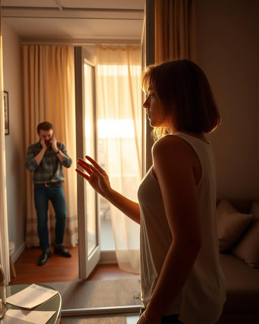 Валентина замерла у слегка приоткрытой балконной двери, слыша, как муж беззаботно болтает из кухни. Жаркое июльское солнце едва шевелило лёгкие шторы, а голос Дмитрия звучал ясно, будто он стоял рядом.